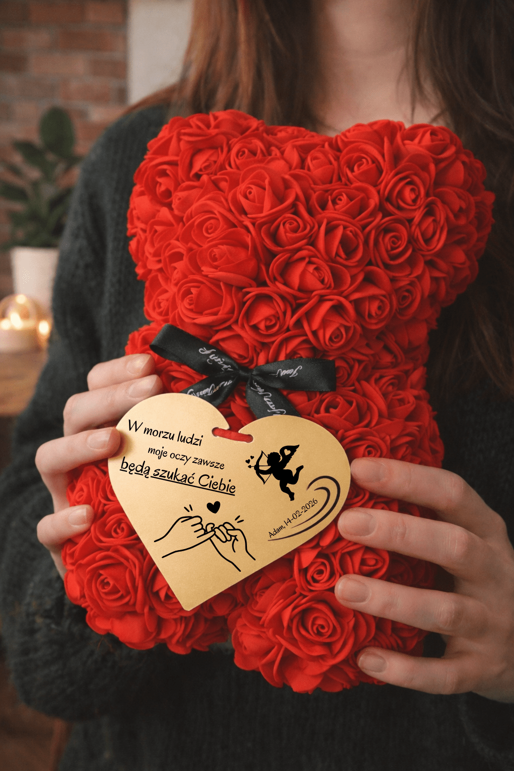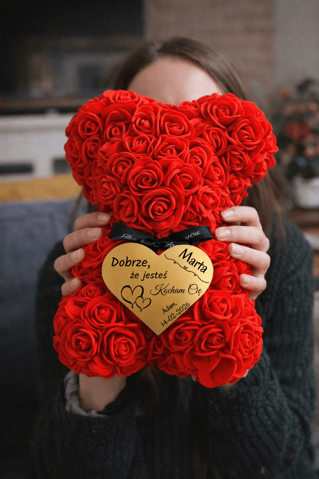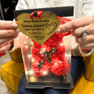 „Bałem się, że to może być trochę kiczowate, ale kompletnie się myliłem. Miś z róż wygląda dużo lepiej niż na zdjęciach, a personalizacja na złotym sercu robi ogromną różnicę.”