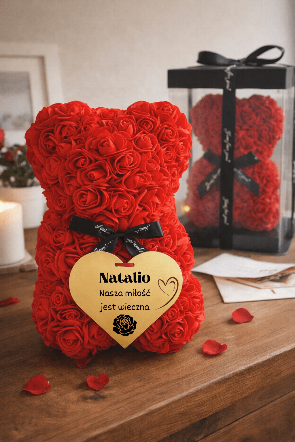 🎁 Zamów misia z róż z dedykacją